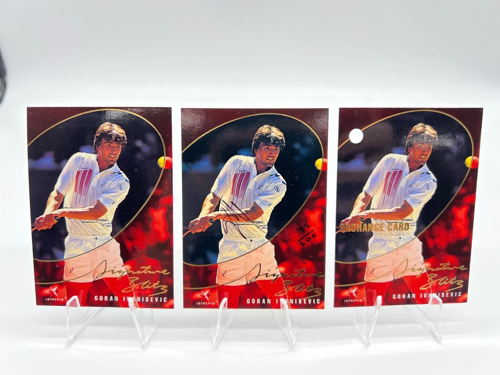 Capture a piece of tennis history with the 1996 Intrepid Blitz Tennis Trading Card, featuring the signature of legendary player Goran Ivanisevic.