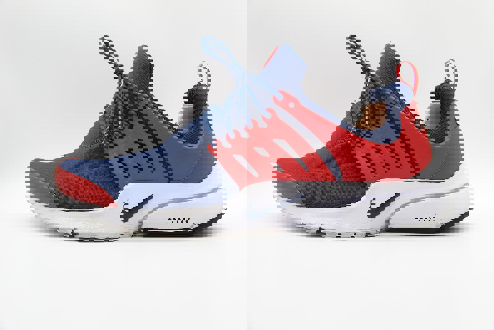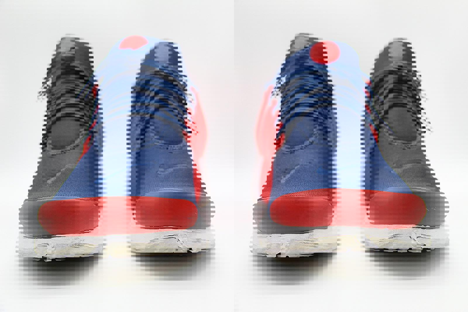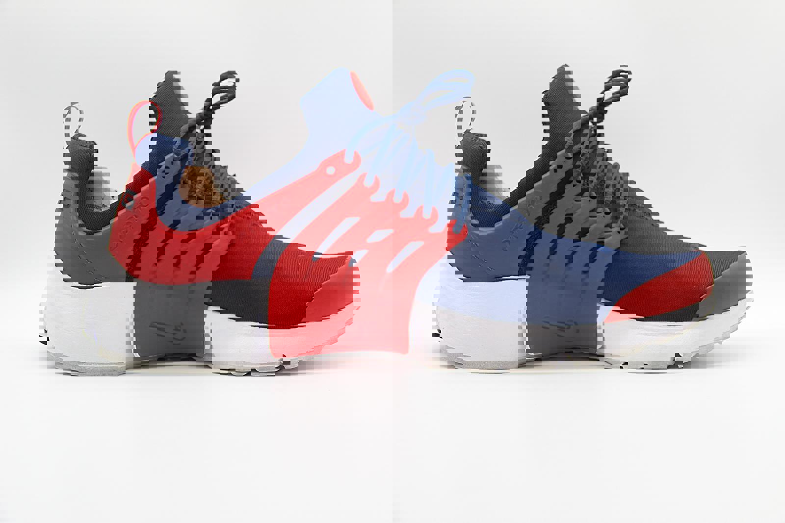 Step into comfort and style with the Nike Air Presto Essential Lace-Up Sneakers. These sneakers combine the iconic Presto design with a breathable mesh upper and a supportive structure, making them a great option for everyday wear. With a bold colorway of navy blue, red, and white, these sneakers add a pop of color to your wardrobe while maintaining versatility and comfort.