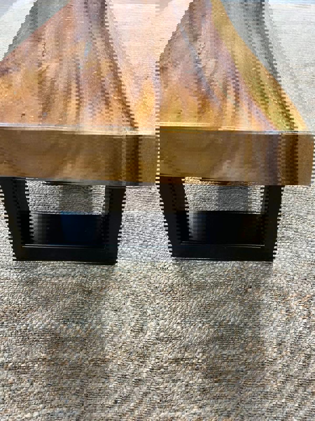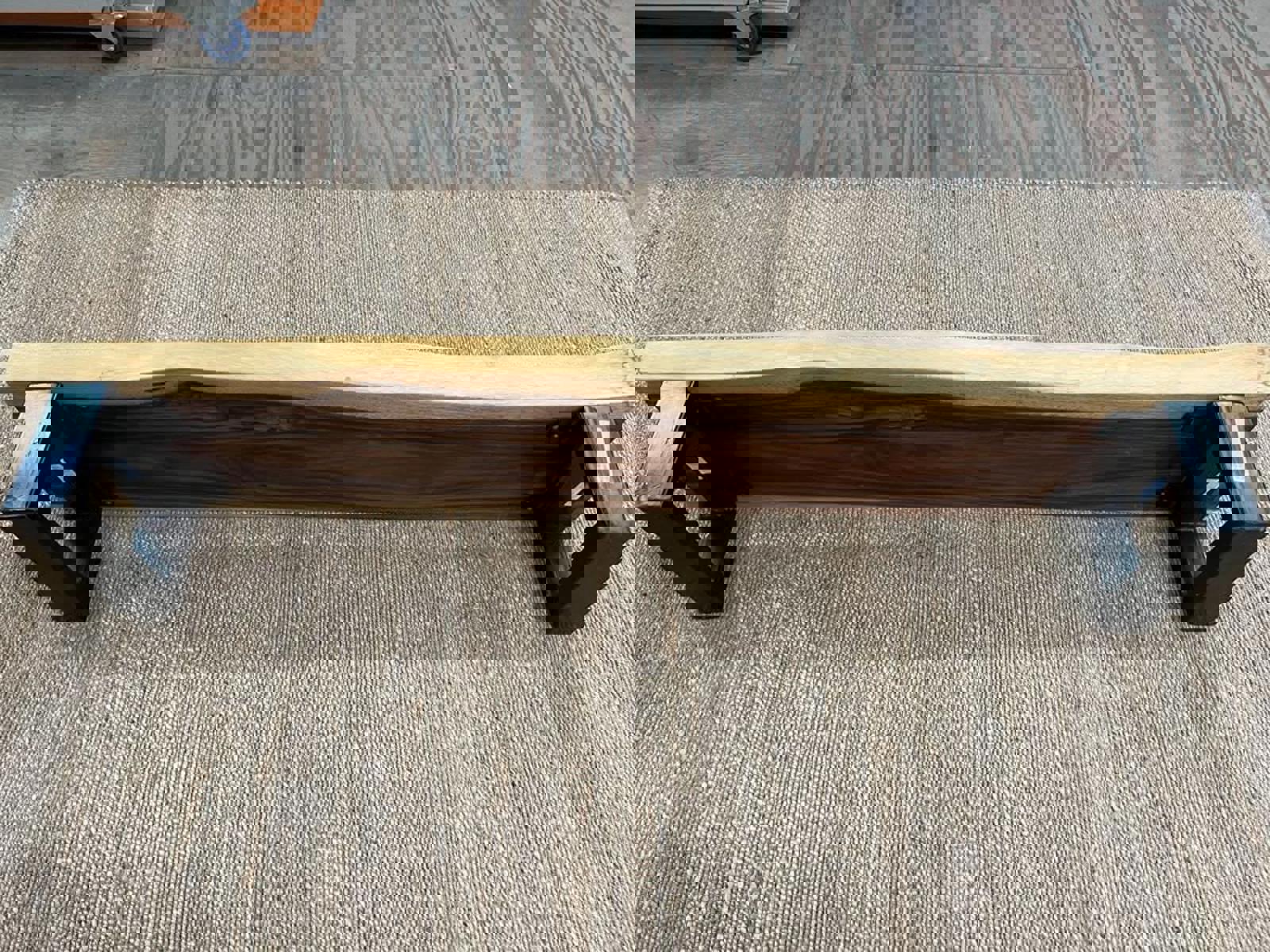Black Walnut hardwood live edge benches with black metal bases. All benches are in a pre-loved condition with some minor cosmetic wearing as pictured.