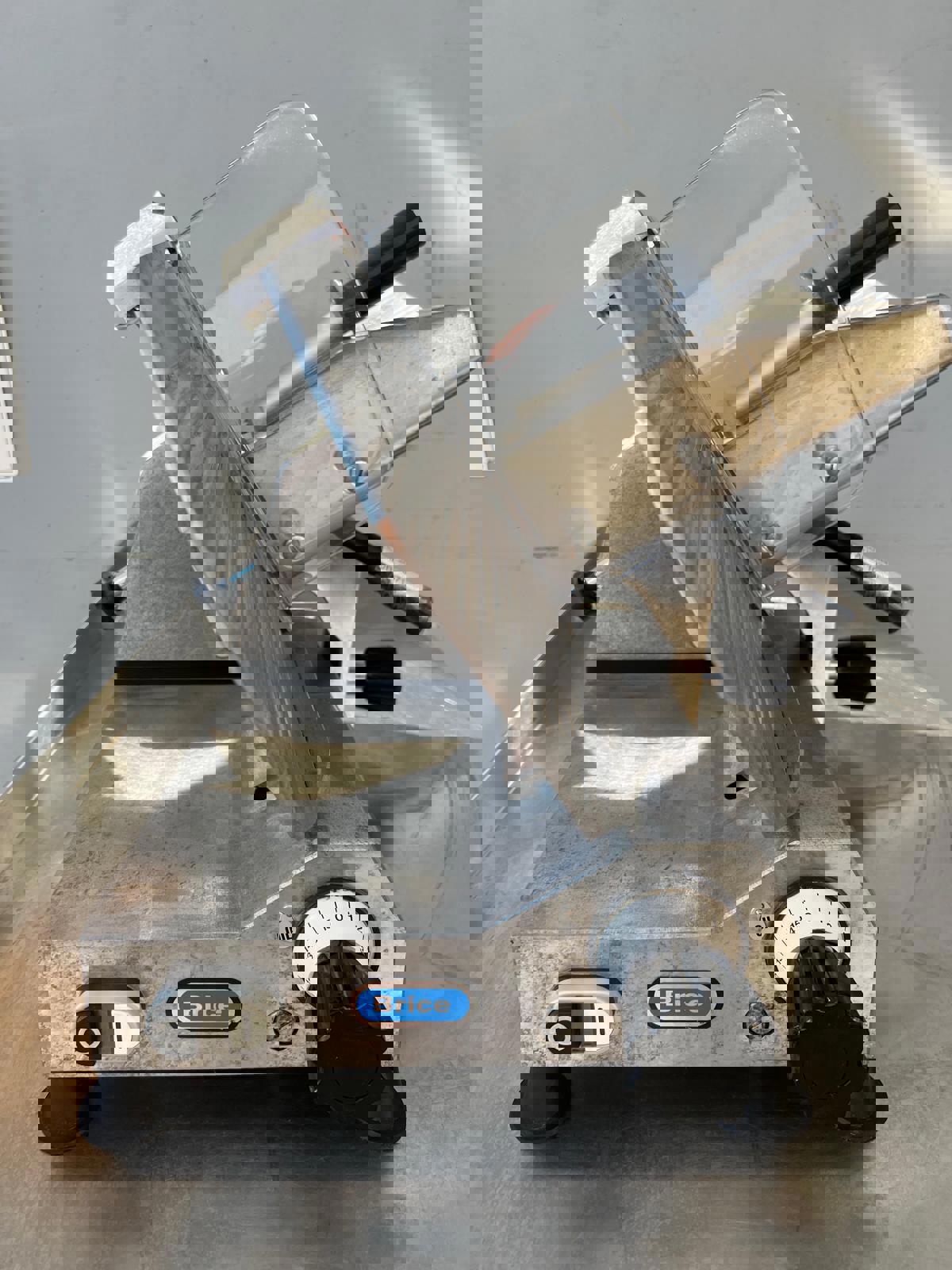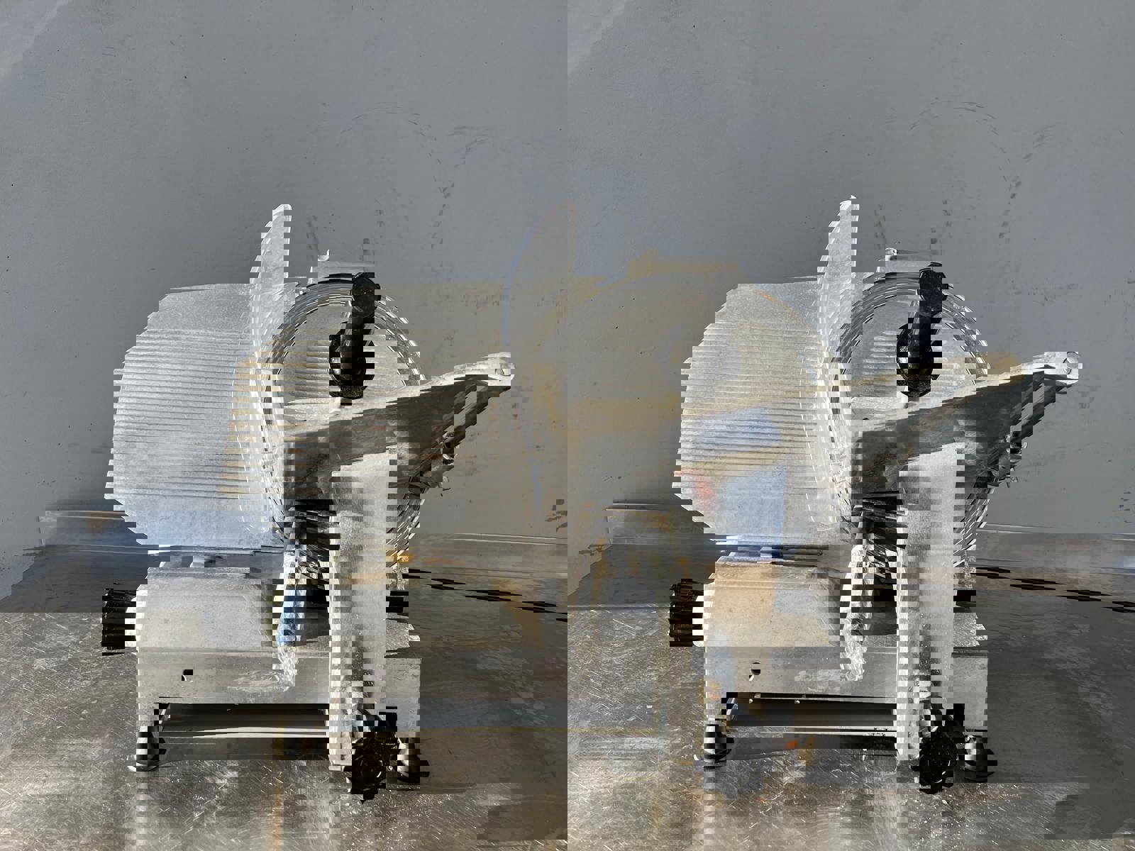 This high-quality Brice GPR 300 meat slicer is ideal for commercial kitchens, delis, butchers, and sandwich shops. Made in Italy and known for its durability, the slicer features a precision blade, adjustable thickness dial, and sturdy aluminum construction.