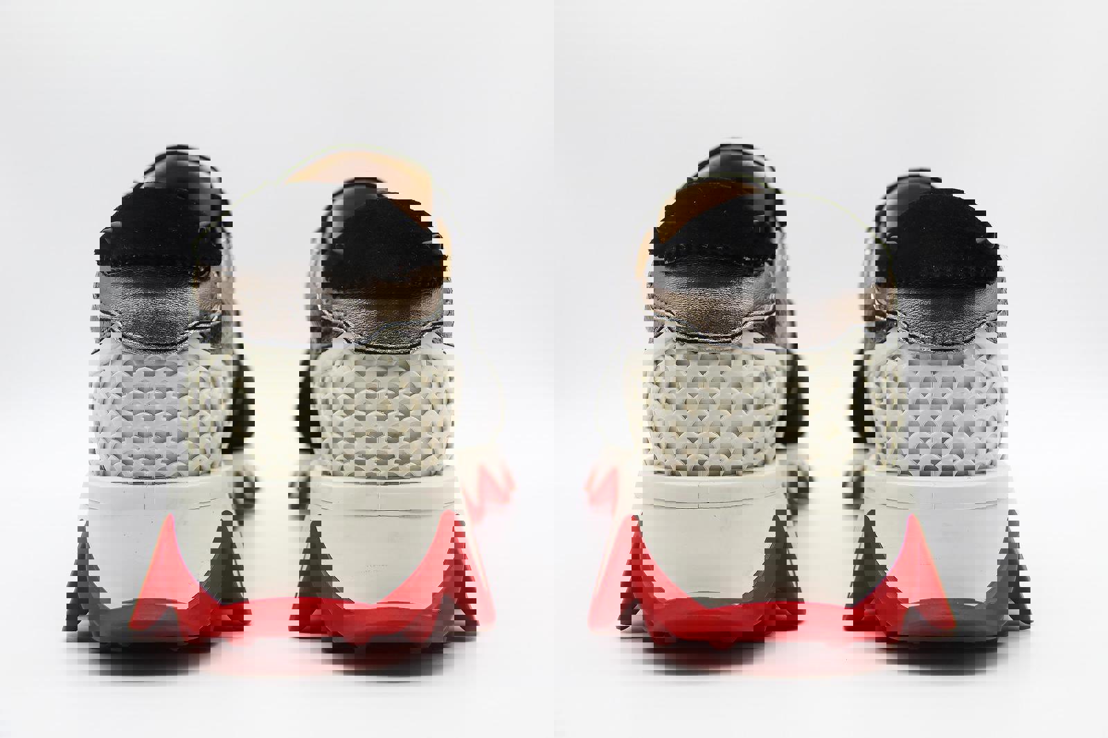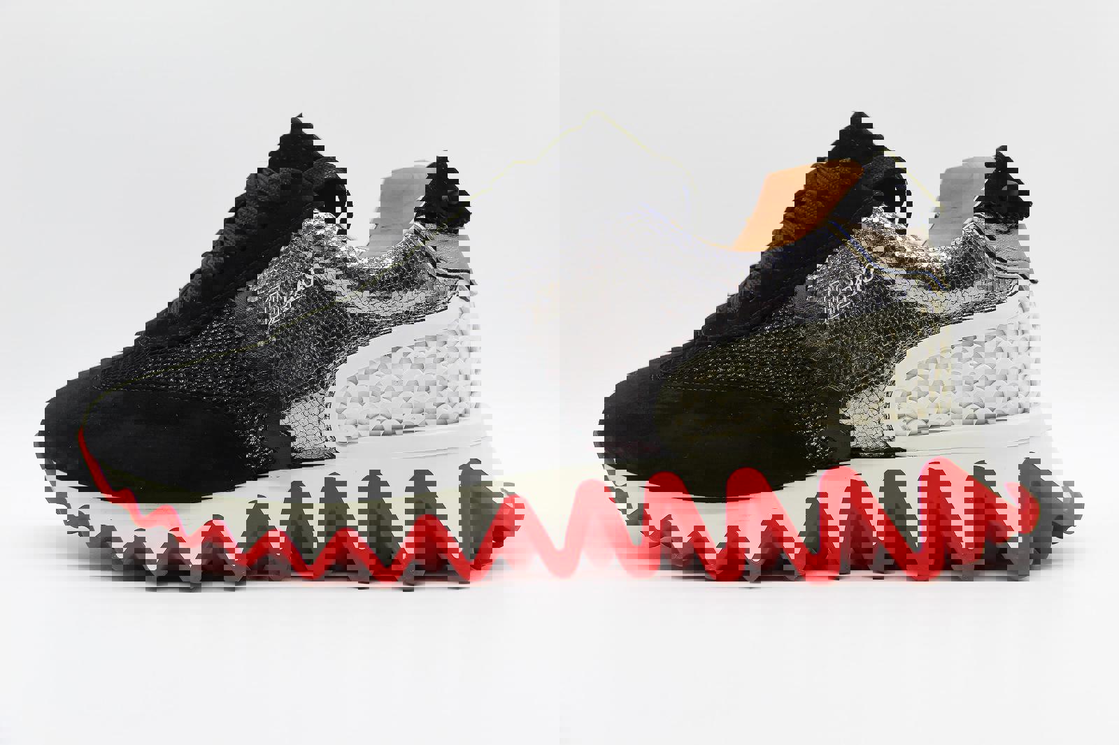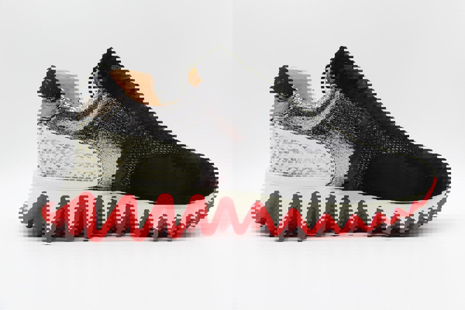 Step into high-fashion streetwear with these authentic Christian Louboutin Loubishark ‘Black Silver’ low-top sneakers. Known for their bold serrated red sole and multi-texture detailing, this pair blends suede, mesh, leather, and metallic elements for an eye-catching statement.