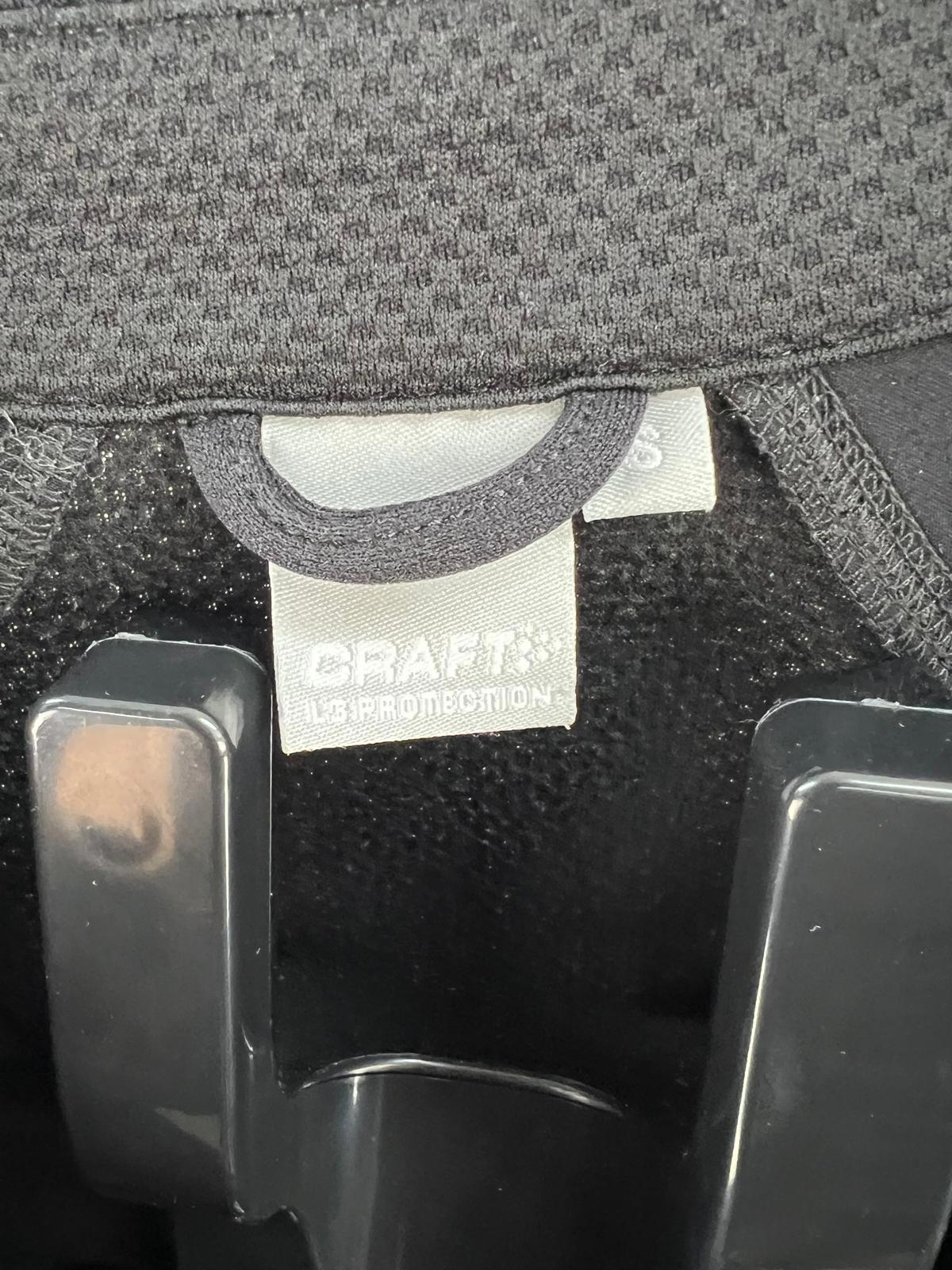 Brand: CraftType: Cycling Jacket (full zip)Size: SmallFabric: Polyester softshell + Gore Windstopper panels — windproof, breathable, warmDetails: Stand collar, reflective piping/logos, rear drawcord at neck, droptail with gripperPockets: 3 rear pockets incl. 1 zip pocketSeason: Autumn/Winter/SpringActivity: Road / Commuter