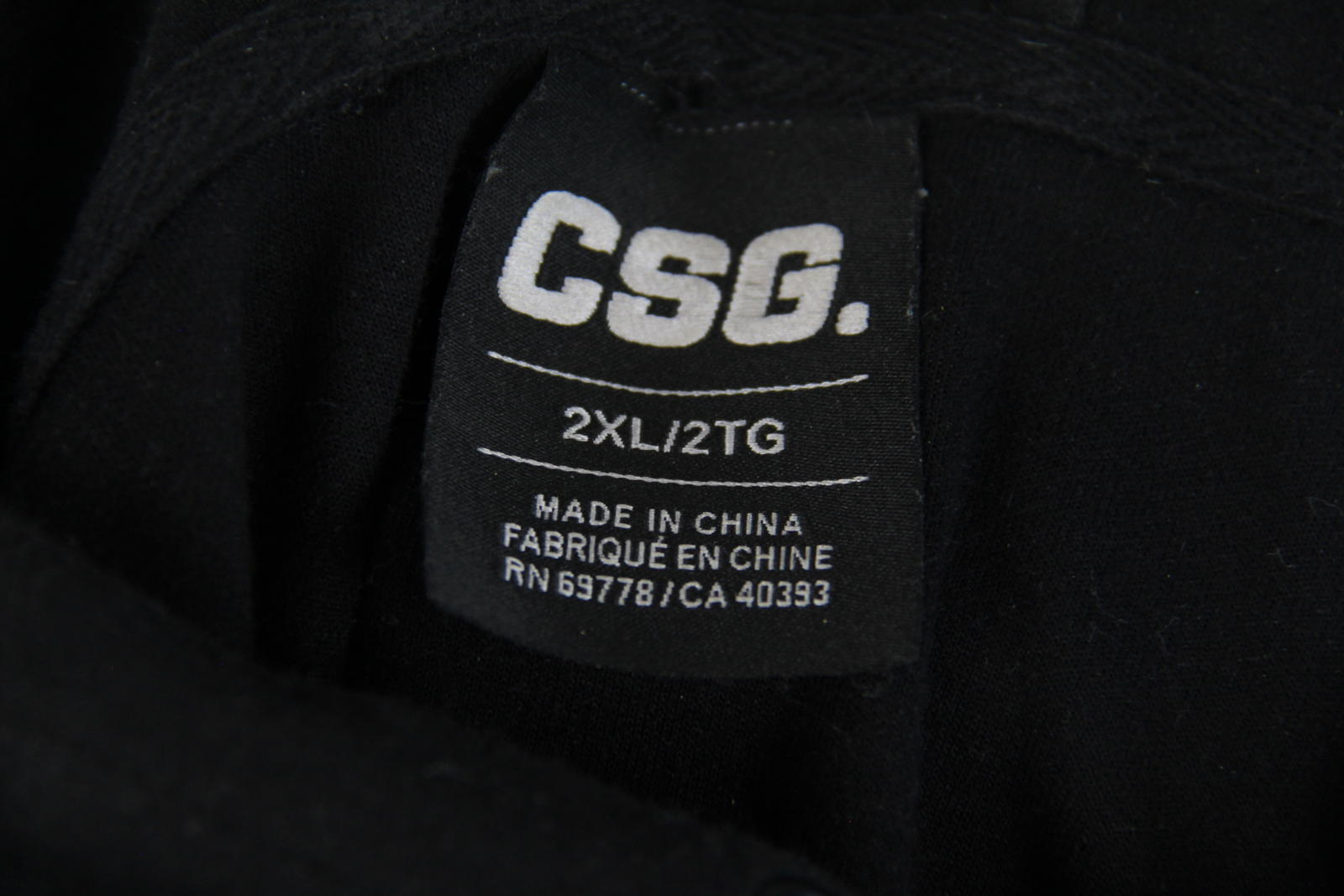 CSG Men's Black Pullover Hoodie – Size 2XL – Cotton Blend – Arm Zip Pocket