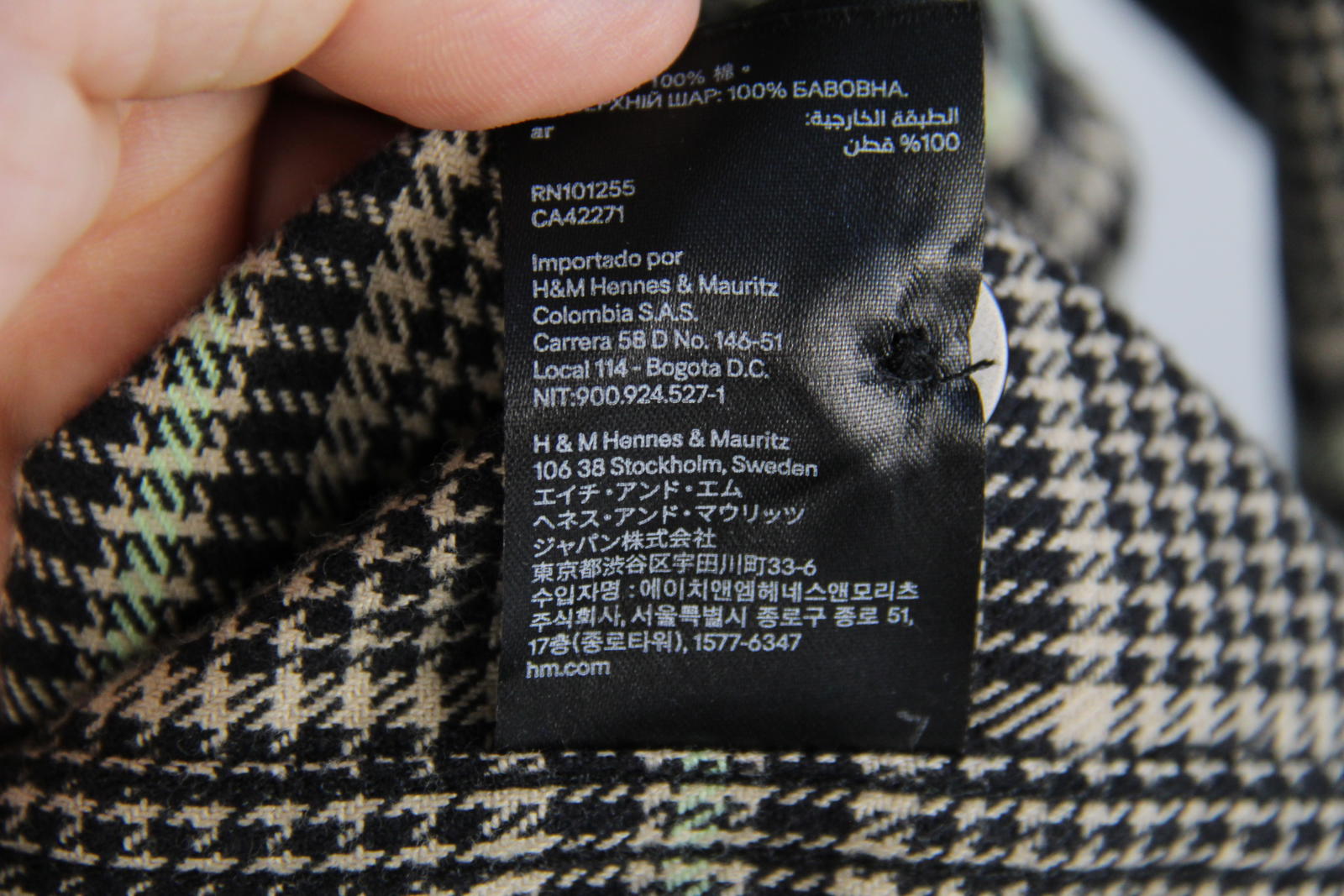 Colour/Pattern: Black, beige, and green houndstooth check