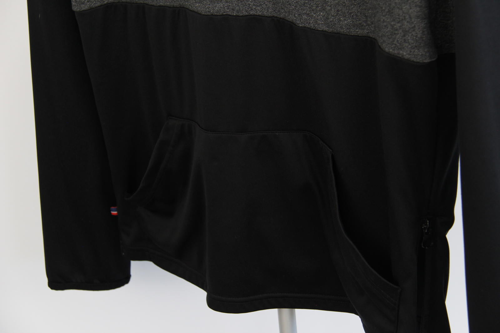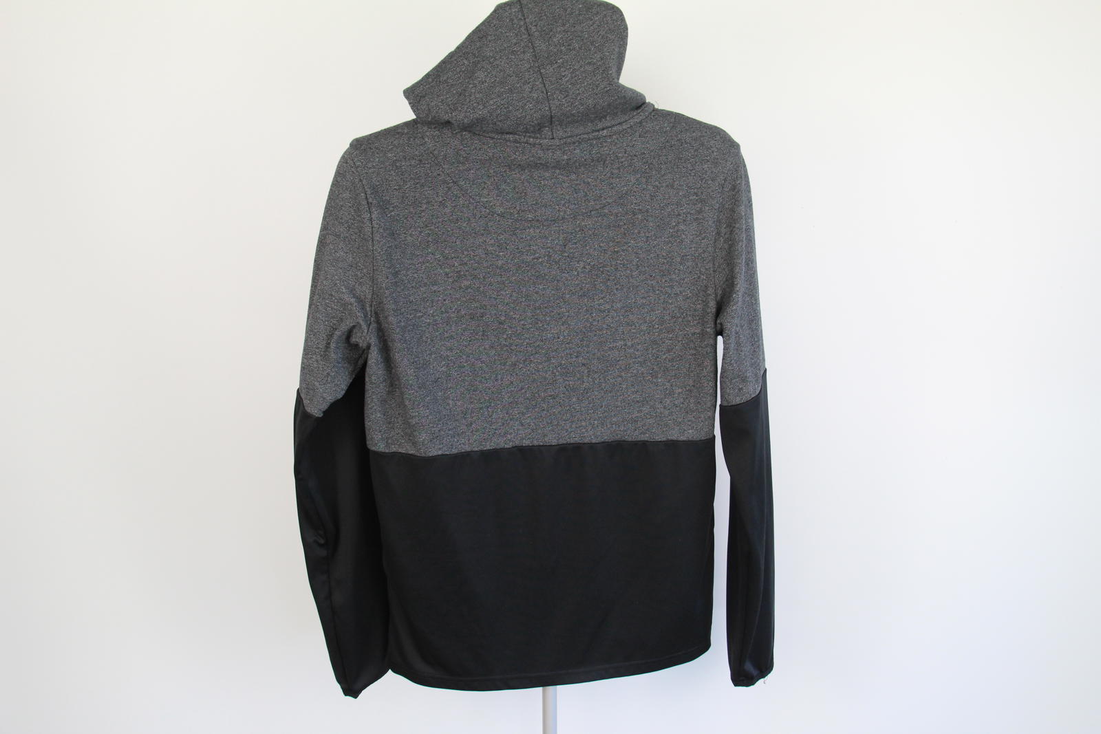 This sporty and stylish hoodie by Le Coq Sportif features a two-tone grey and black design with a quarter-zip neckline, hood, and front kangaroo-style pocket with side zip entry. Made with a soft cotton blend shell and durable polyester lower, it’s perfect for everyday casual wear or light active use.