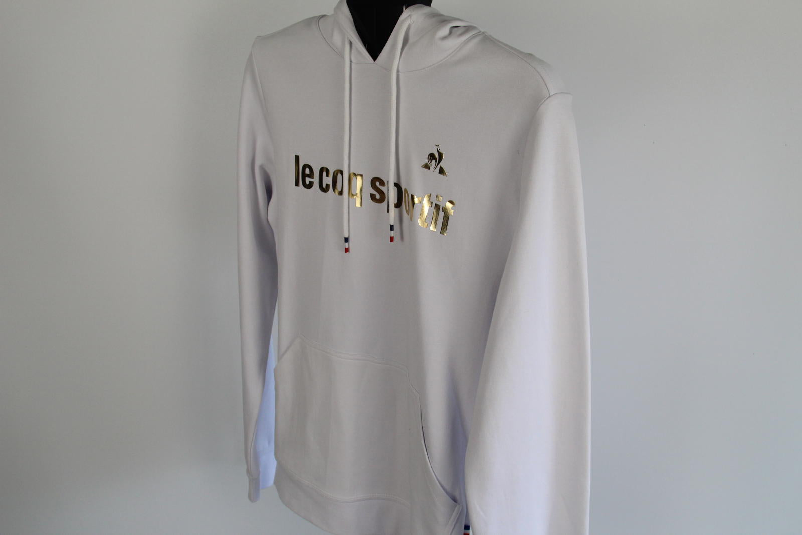 Le Coq Sportif Roissey White Hoodie Gold Foil Logo Sweatshirt - Size S