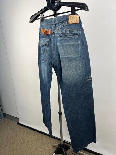 Mooks Men's Carpenter Cropped Jeans Blue Denim Cinch Back W30
