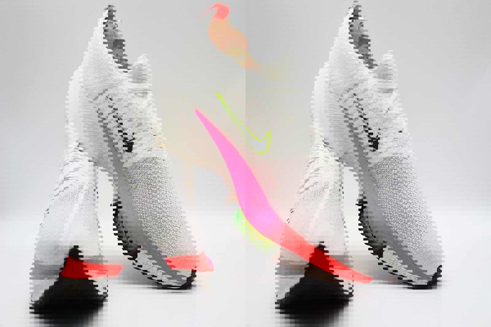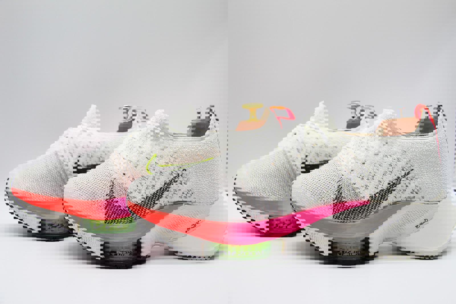 Push your pace in the Nike Air Zoom Tempo NEXT% Flyknit ‘Rawdacious’, style code DJ5430-100. This high-performance runner combines ZoomX foam, Zoom Air pods, and Flyknit construction in a striking Rawdacious colorway—featuring a white base with neon pink and volt accents, designed to celebrate sport and movement.