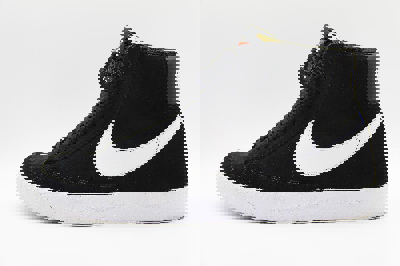 Classic meets modern with these Nike Blazer Mid '77 sneakers, featuring a premium black suede upper and vintage-style exposed foam tongue. The crisp white Swoosh and midsole offer a timeless contrast that works with almost any outfit.
