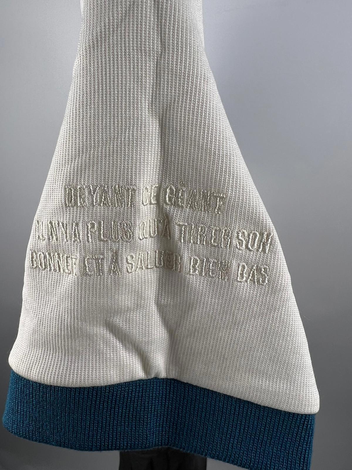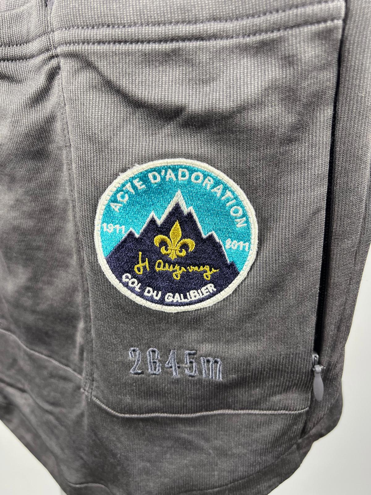Rapha short sleeve cycling jersey with GALIBIER chest graphic and tri-colour teal/cream/charcoal panels. Half-zip mock neck and rear storage make it a classic Rapha piece.