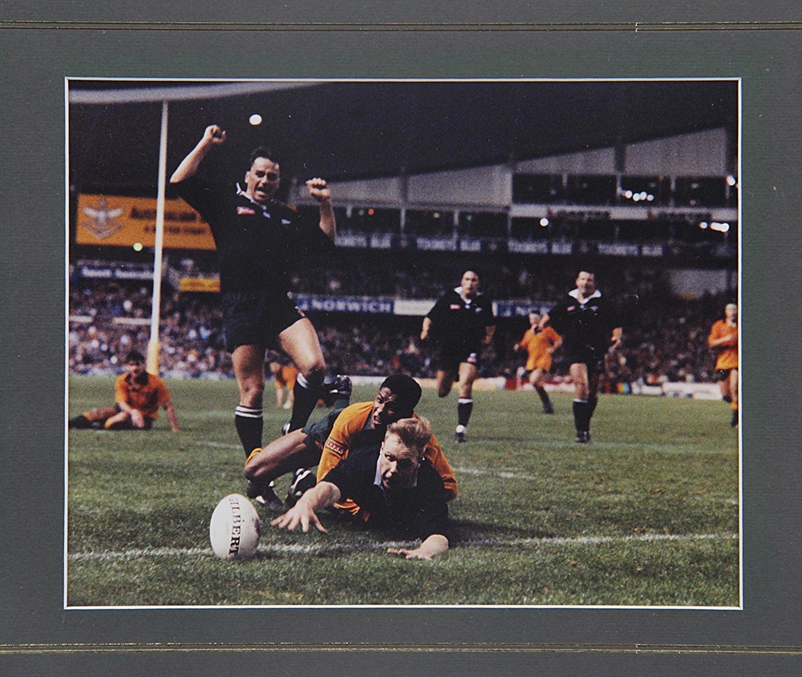 Celebrate a historic moment in rugby with this stunning framed print from the Bledisloe Cup on August 17, 1994, featuring Australia vs. New Zealand.