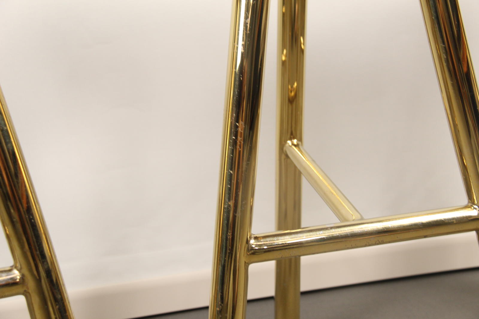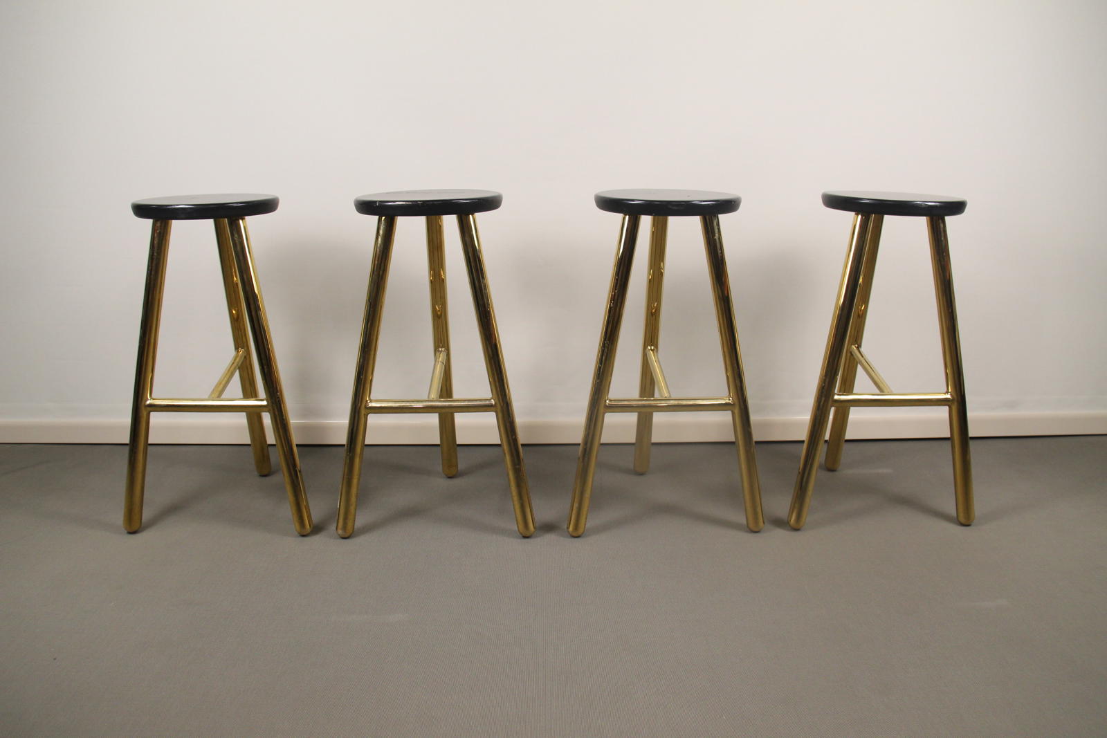 Featuring glossy black round seats and striking gold-tone legs, these stools combine sophistication with durability.
