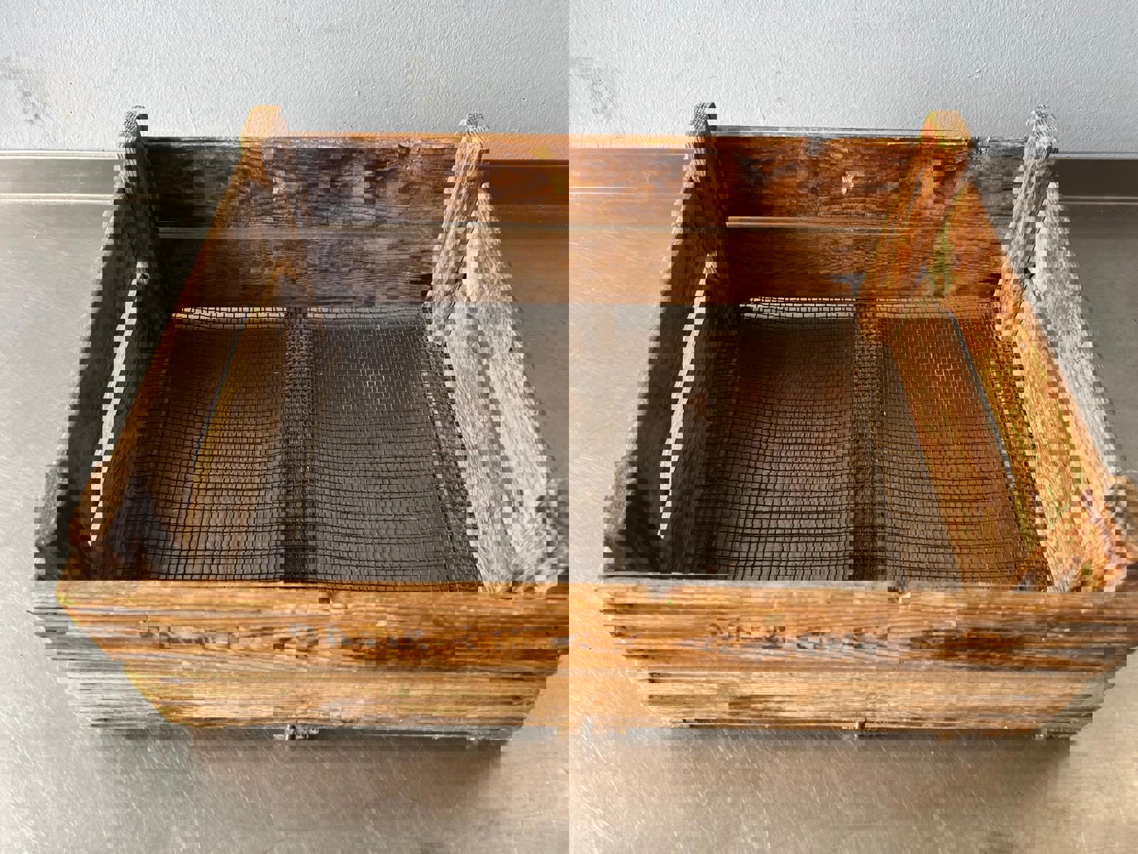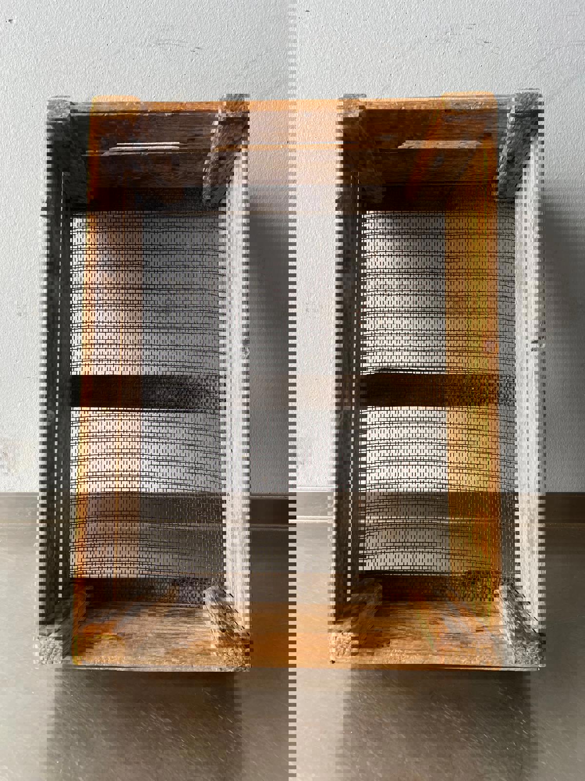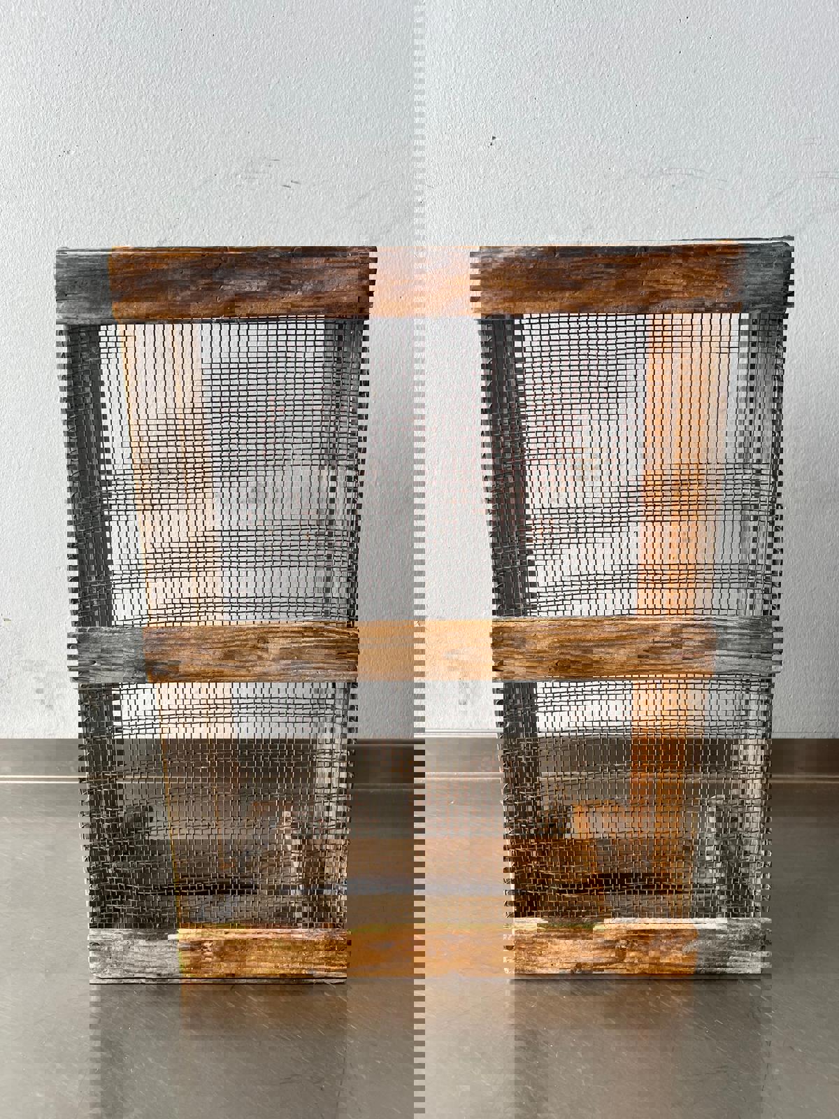 Material: Solid aged wood with galvanized mesh base